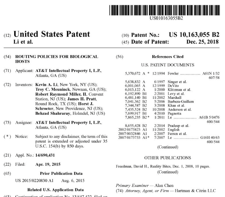 AT&T patent from 2018 discussing the wireless surveillance of brain activity as well as the changing of thoughts and brain function from the cell phone to the brain. They call the human brain the Neurological Area Network from which the neurosignals of the brain are monitored.