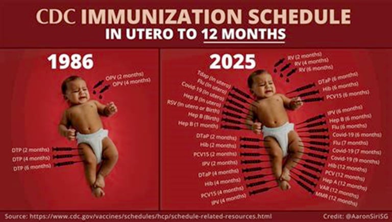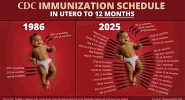 The CDC just published its 2025 vaccine schedules. The CDC has now gone from 7 routine vaccine injections in 1986 to over 200 routine vaccine injections in 2025!